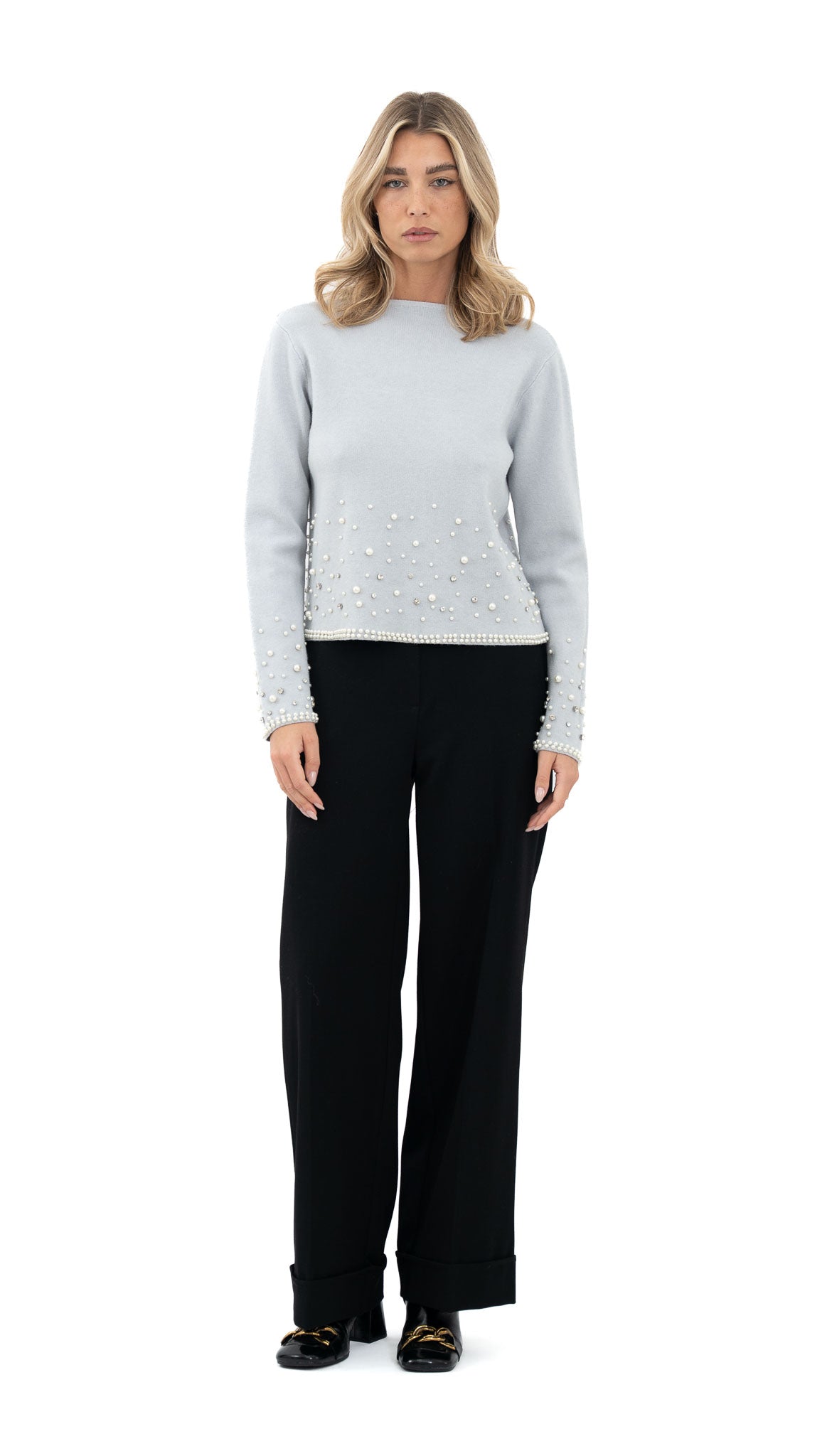 Crne hlače ravnog kroja sa manžetom. Izrađene od lagane viskoze koja osigurava udobnost i profinjen izgled tijekom cijelog dana.
