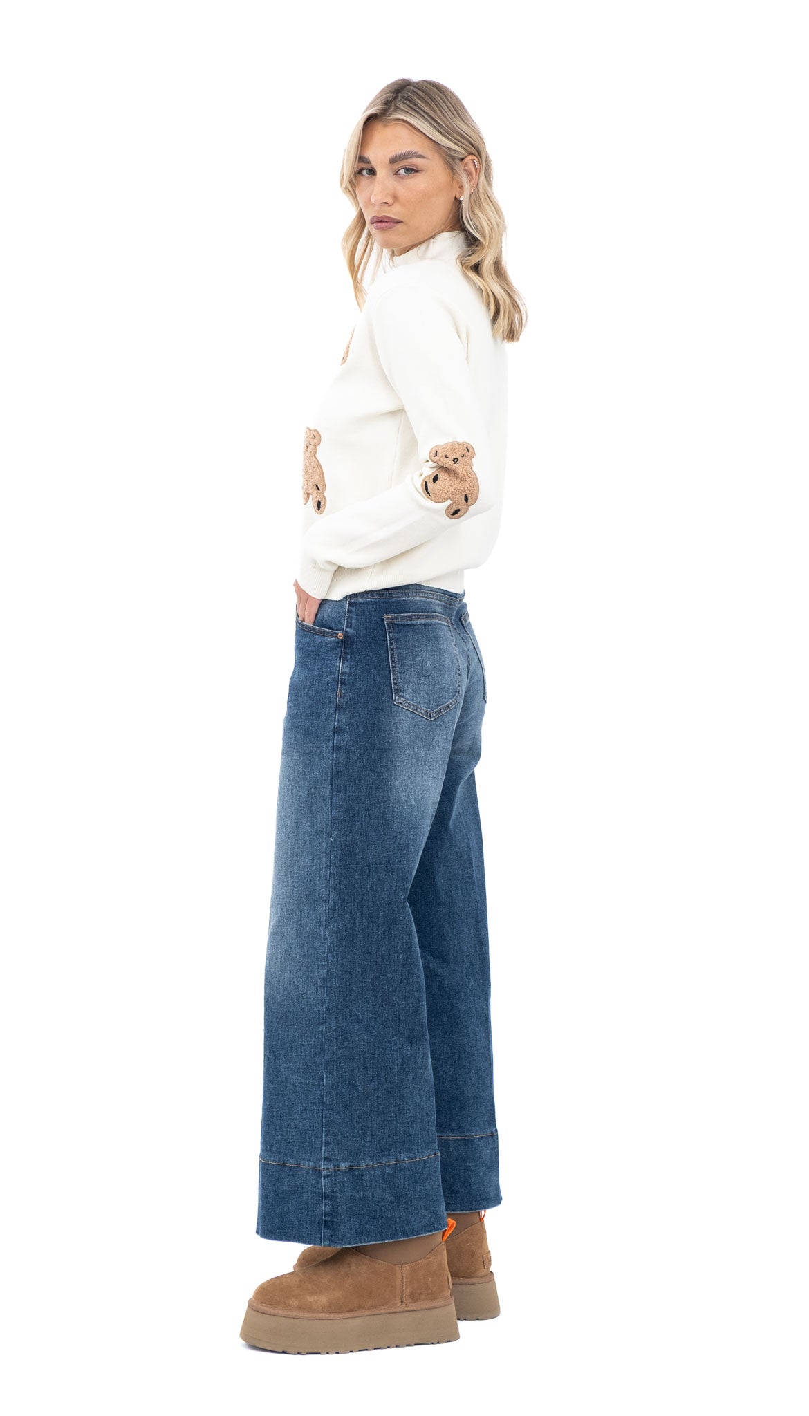 Moderne i udobne, ove jeans hlače širokog kroja donose opušten i trendi izgled. Klasičan kroj visokog struka i blago kratke nogavice stvaraju savršen balans između retro stila i suvremenog dizajna.