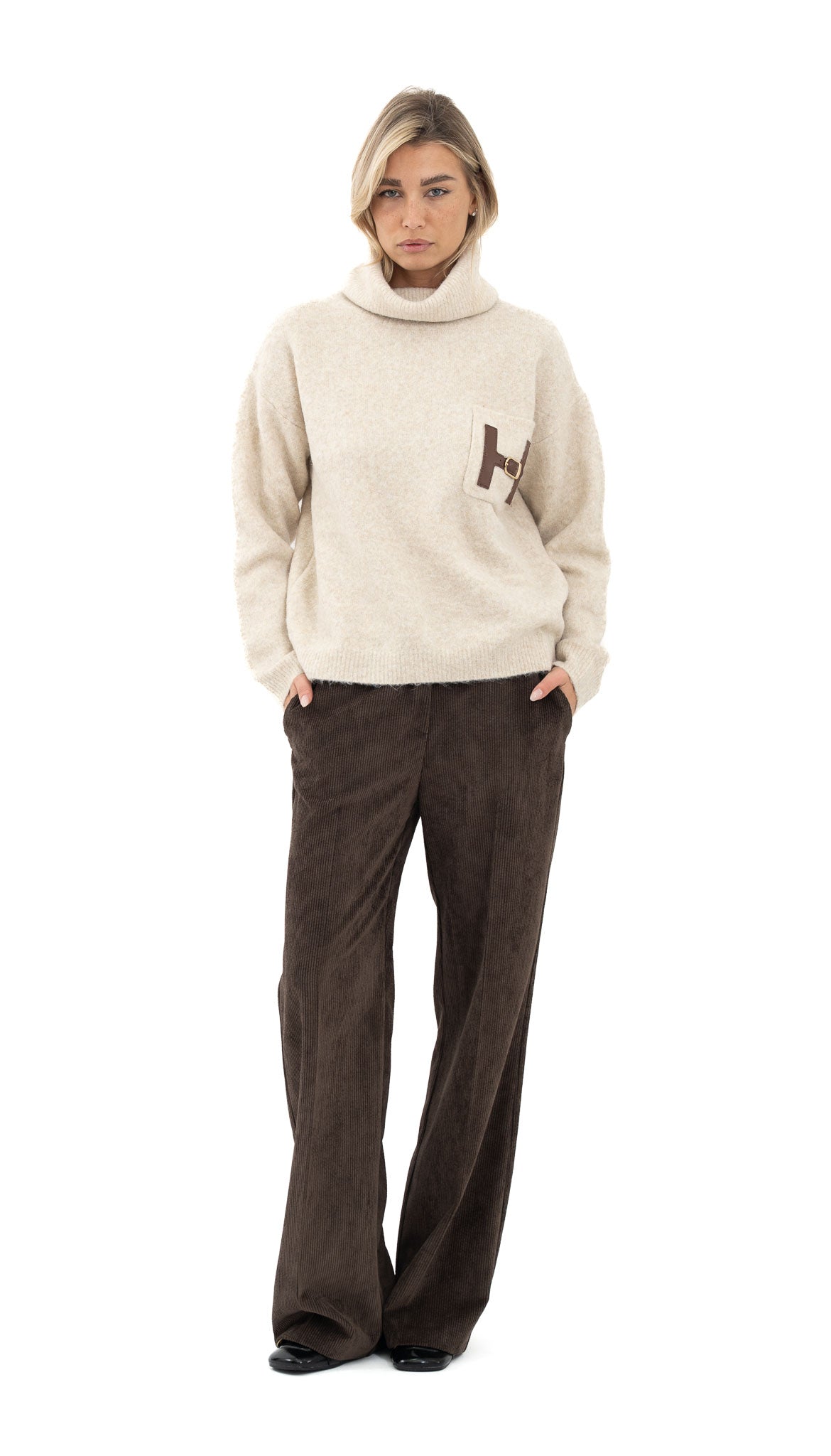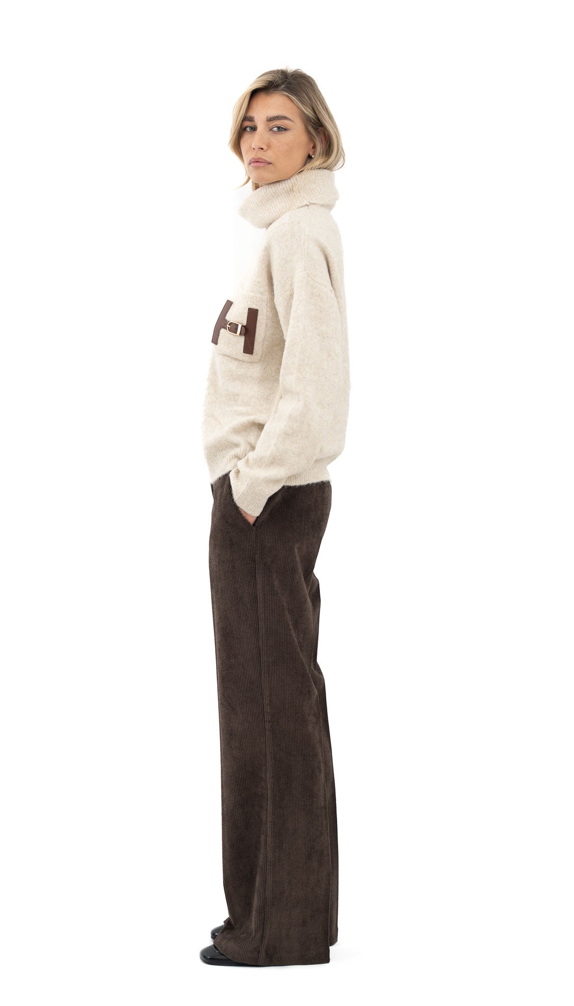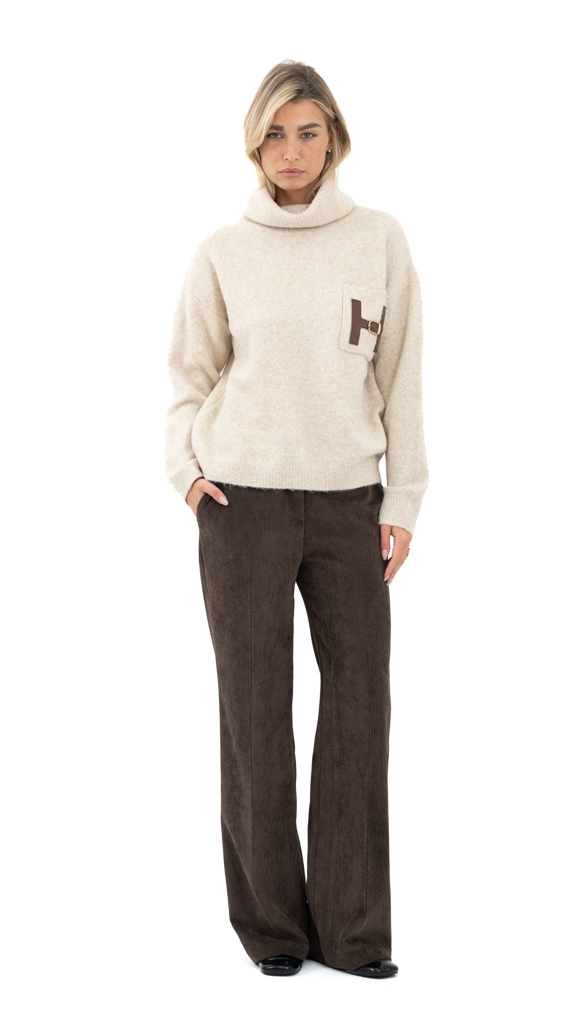 Kombiniraj uz pletivo i ravne cipele za ležernu dnevnu varijantu.