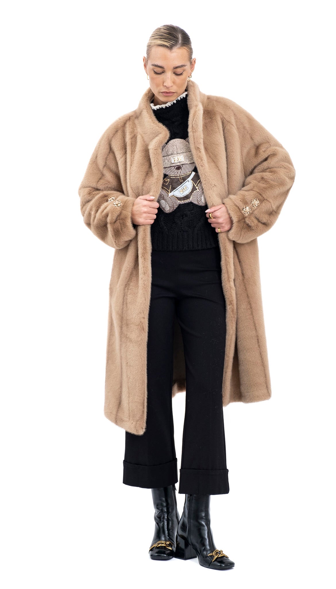 Neka bunda bude zvijezda outfita – kombinirajte je s tamnim hlačama i gležnjačama, a dodatke poput zlatnog nakita i šarene torbice koristite za završni dodir elegancije.