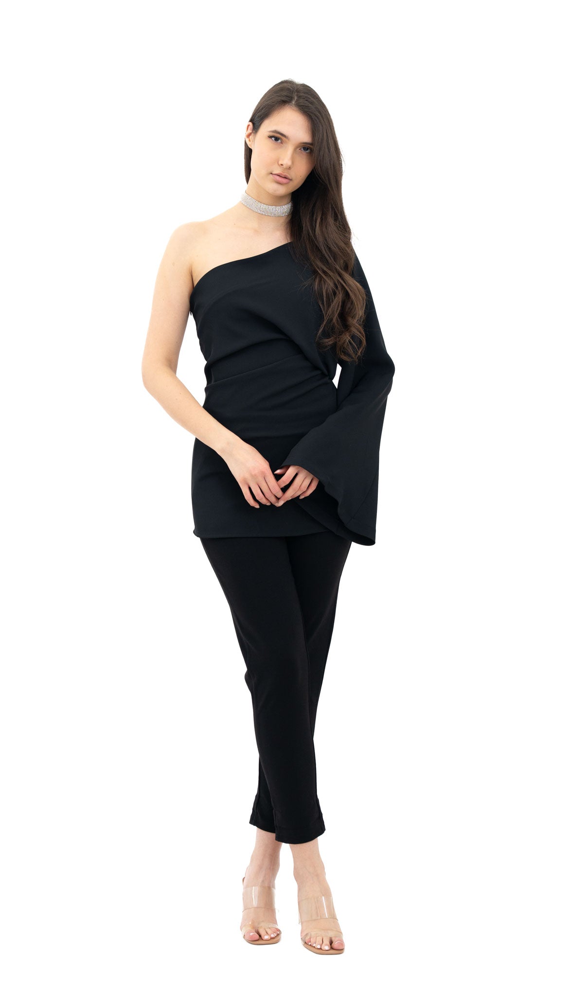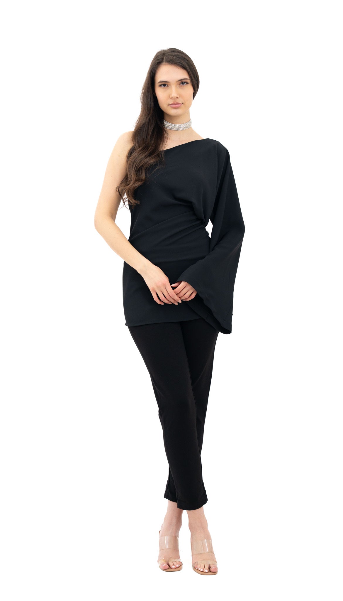 Model: Asimetrična, strukirana sa jednim zvonolikim rukavom. Izrađena od mješavine viskoze.