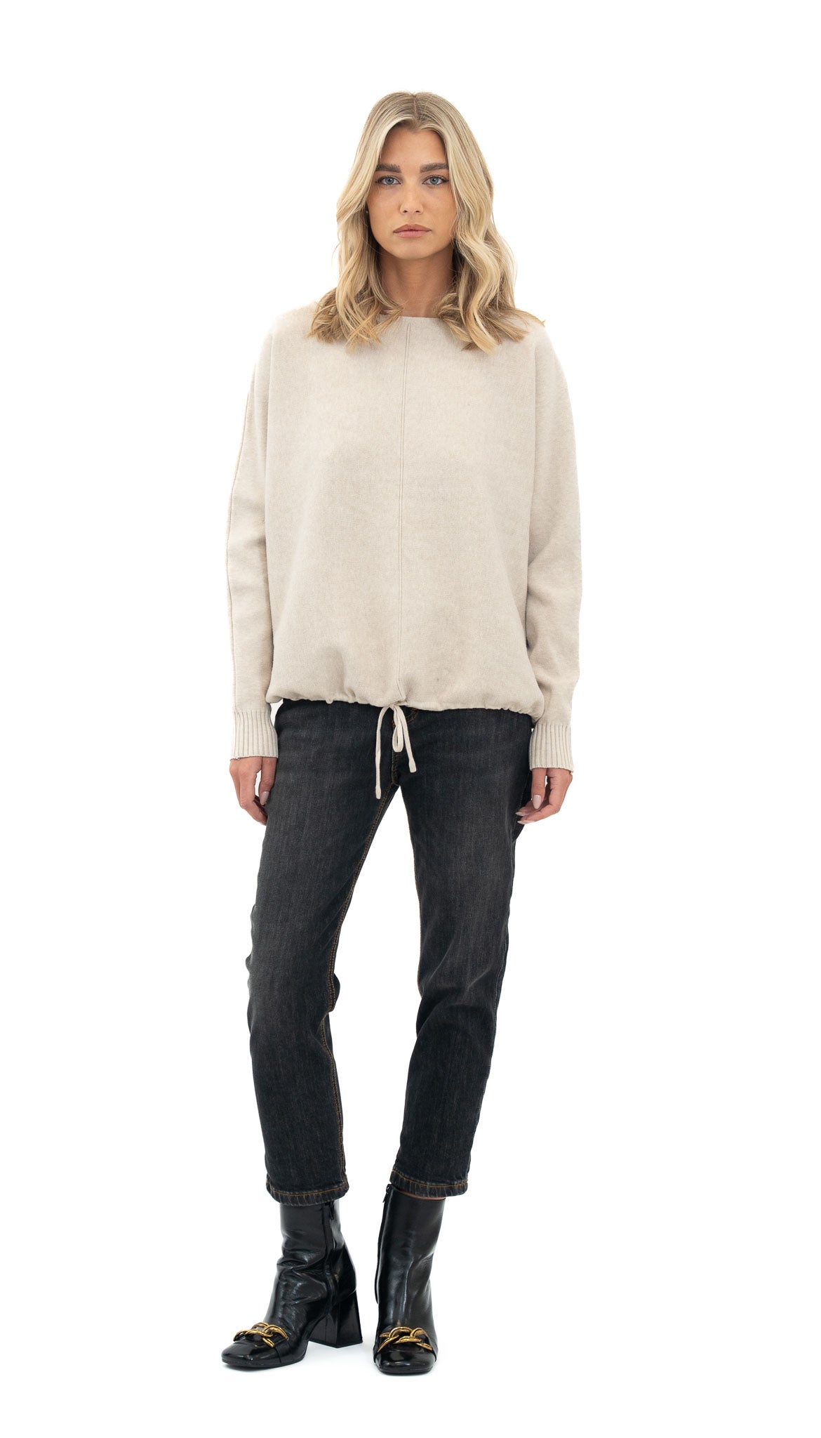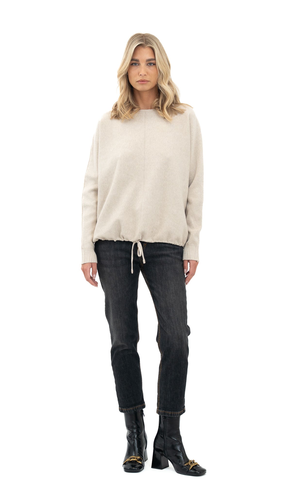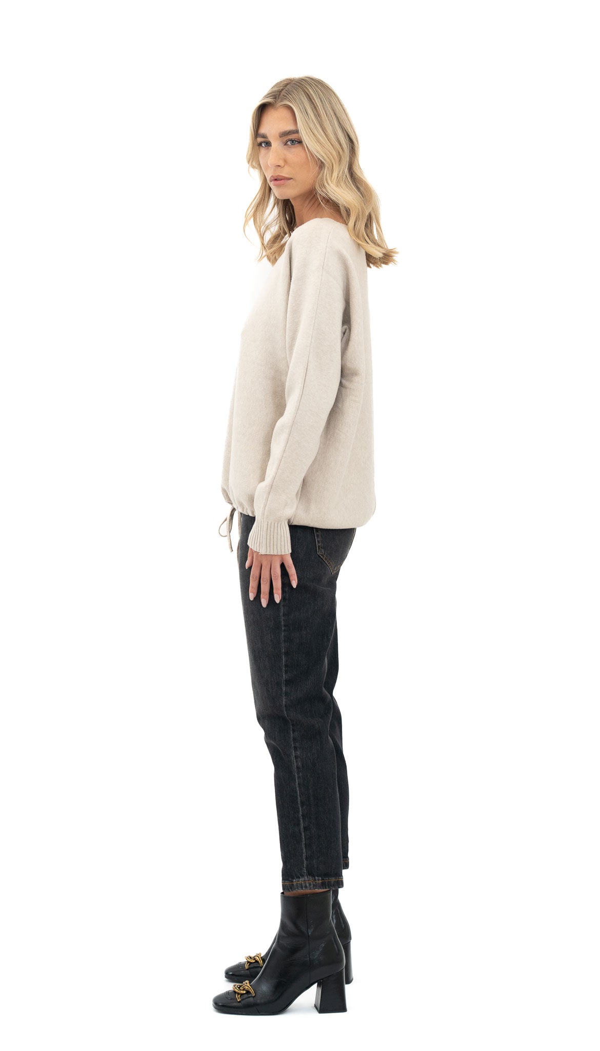 Ležerna majica od mekane viskoze s opuštenim krojem i decentnom vezicom pri dnu, savršena za svakodnevne kombinacije uz osjećaj udobnosti i lakoće.