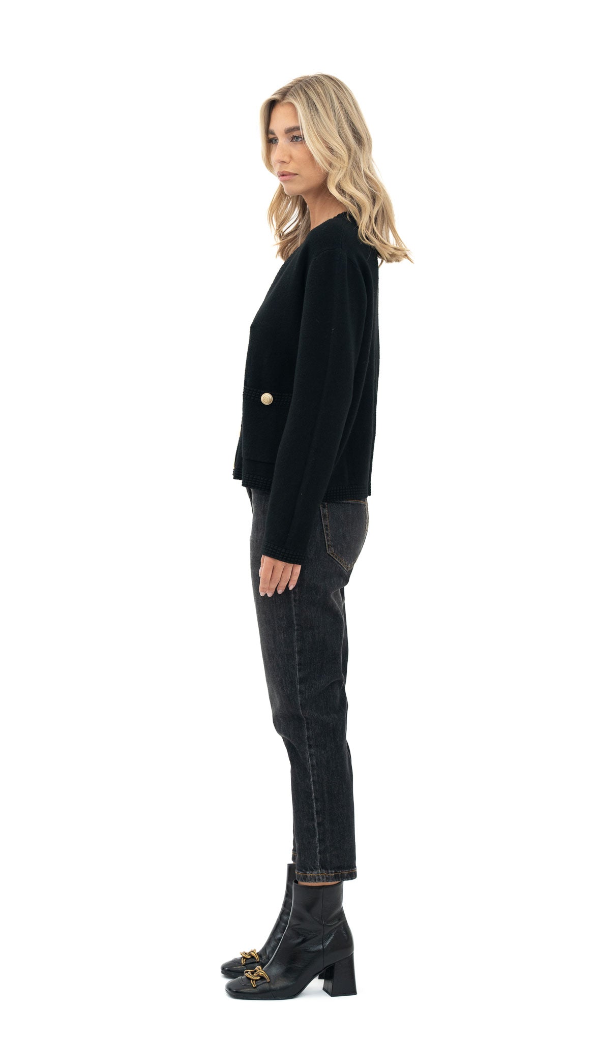 Ključne značajke: Materijal: Viskoza – mekana, prozračna i ugodna na koži. Dizajn: V-izrez s kopčanjem na gumbe i čistim linijama. Kroj: Ravan, blago strukiran kroj za ugodno nošenje. Boja: Crna – bezvremenska i lako kombinirana.
