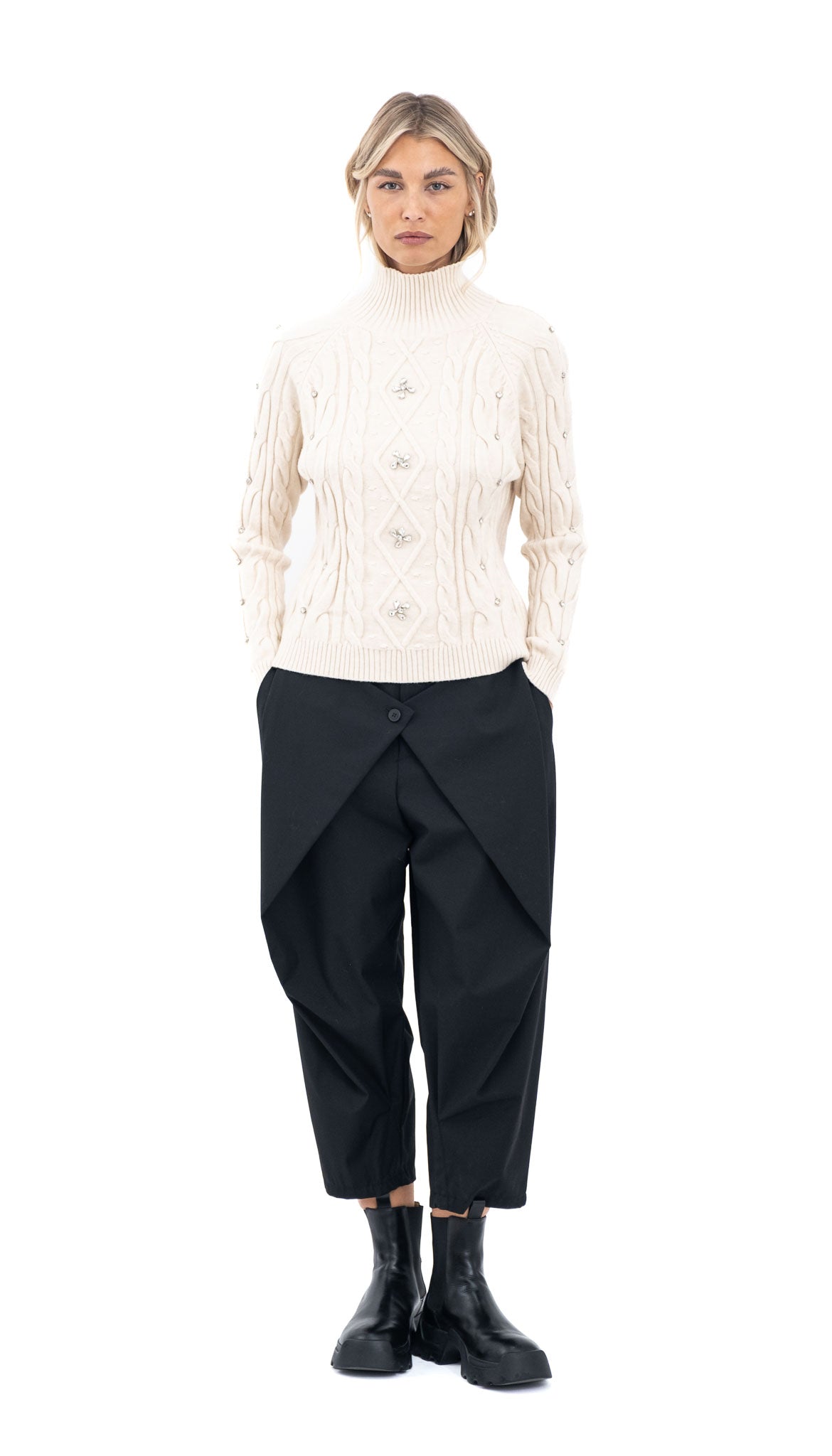 • Dizajn: Pleteni uzorak i detalji od štrasa.