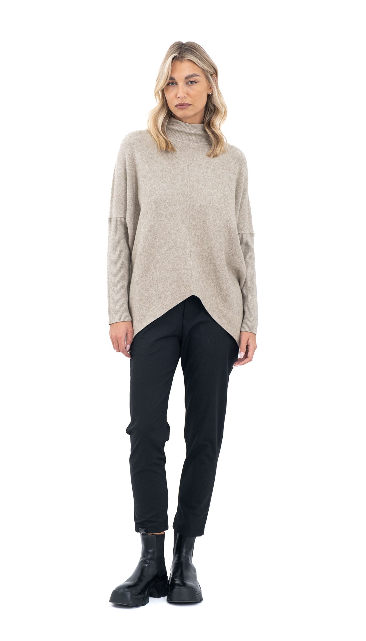 Bež majica od viskoze s visokim ovratnikom. Udobna, mekana i pogodna za svakodnevno nošenje.