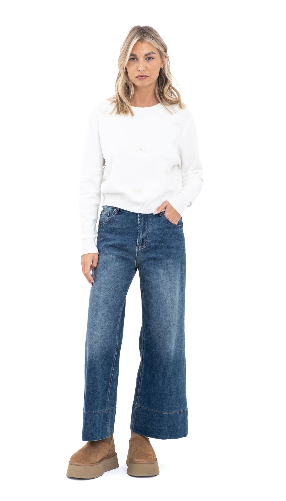 Bijela majica sa našivenim mašnicama