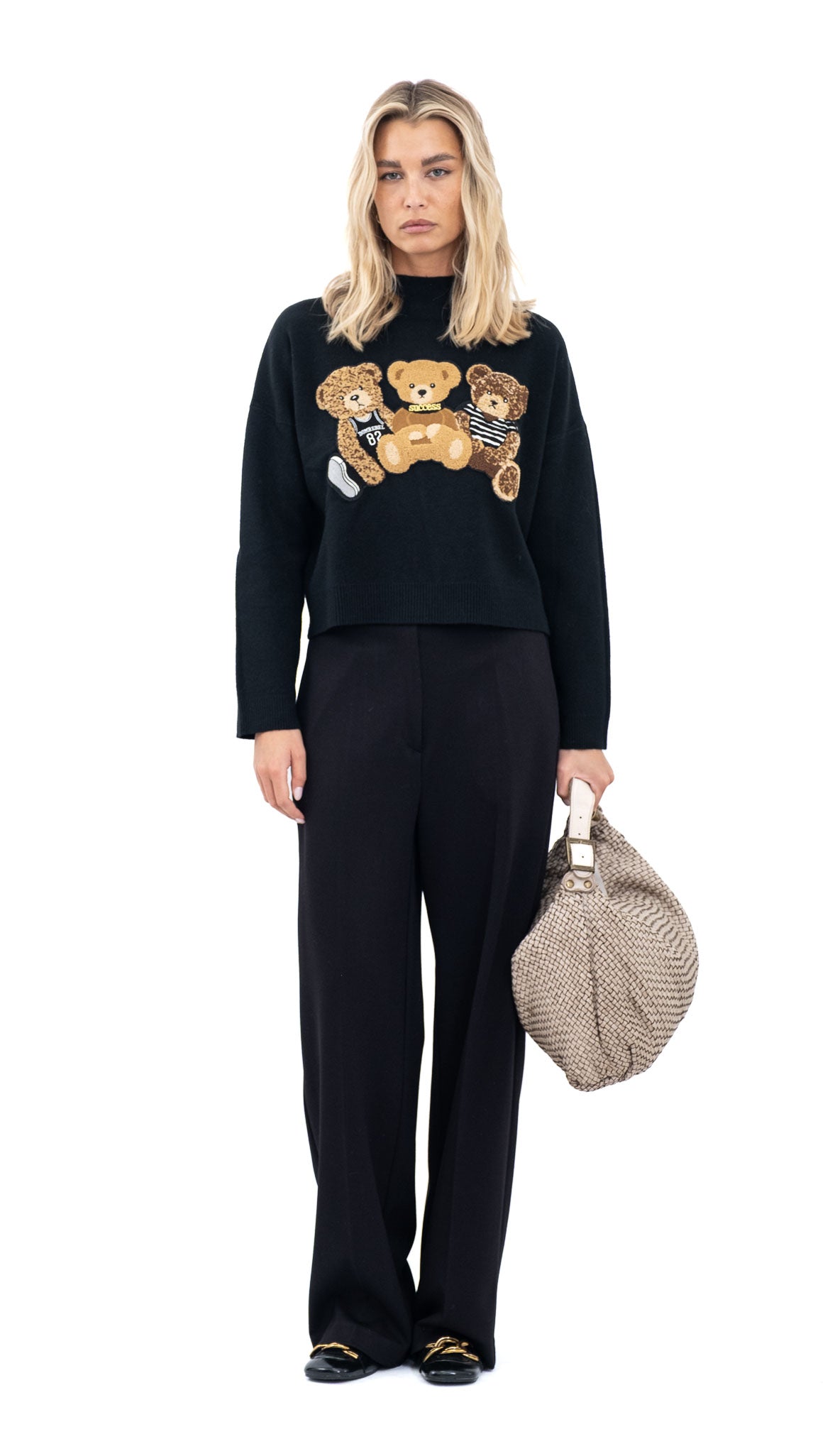 Crna majica od viskoze s aplikacijom medvjedića sprijeda. Meka, udobna i razigrana.