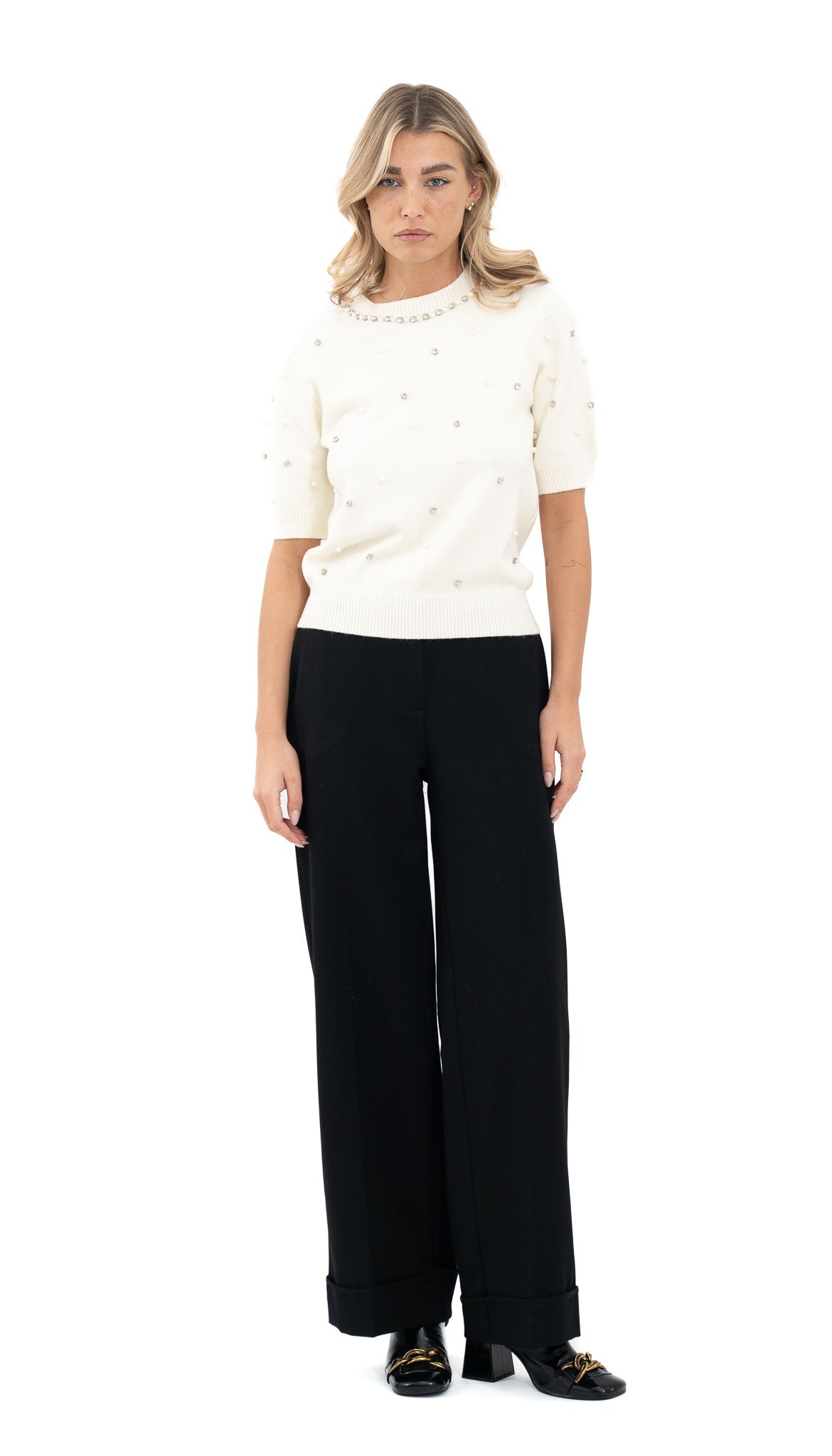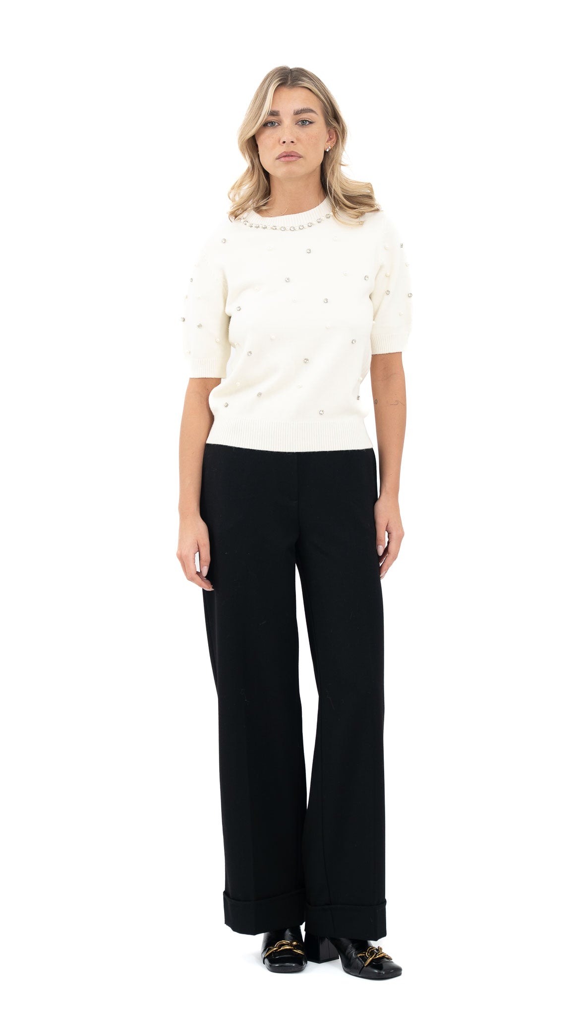 Bijela majica s biserima sprijeda