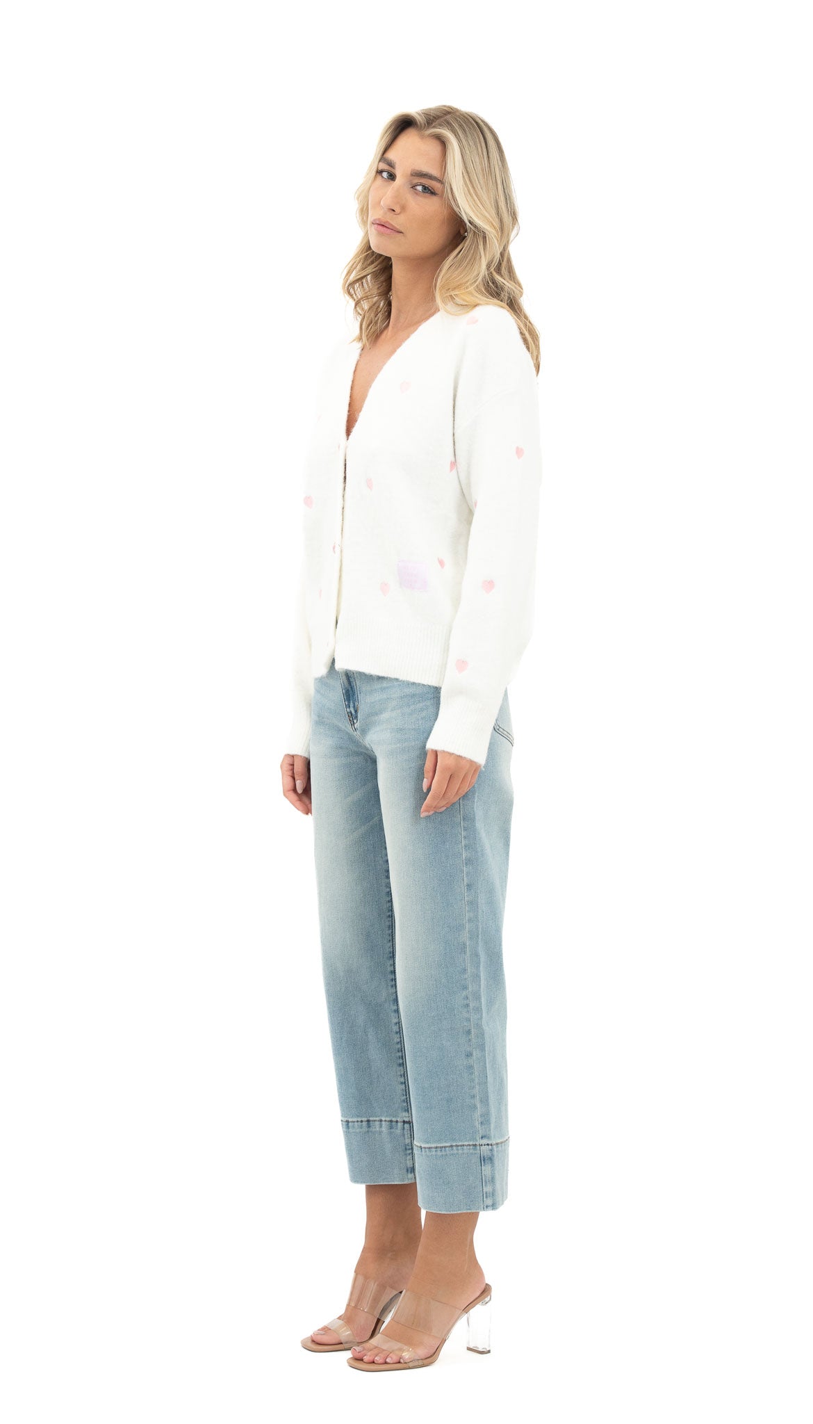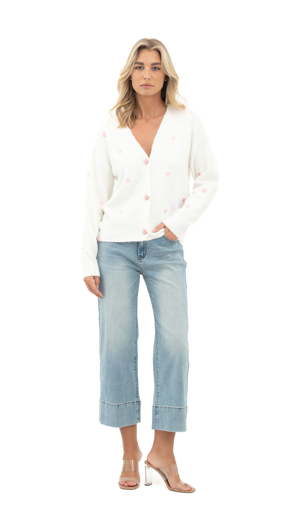 Kardigan od mekane viskoze s V-izrezom i diskretnim uzorkom koji daje nježan i ženstven dojam. Ugodan za nošenje i lako uklopiv u svakodnevne i opuštene kombinacije.
