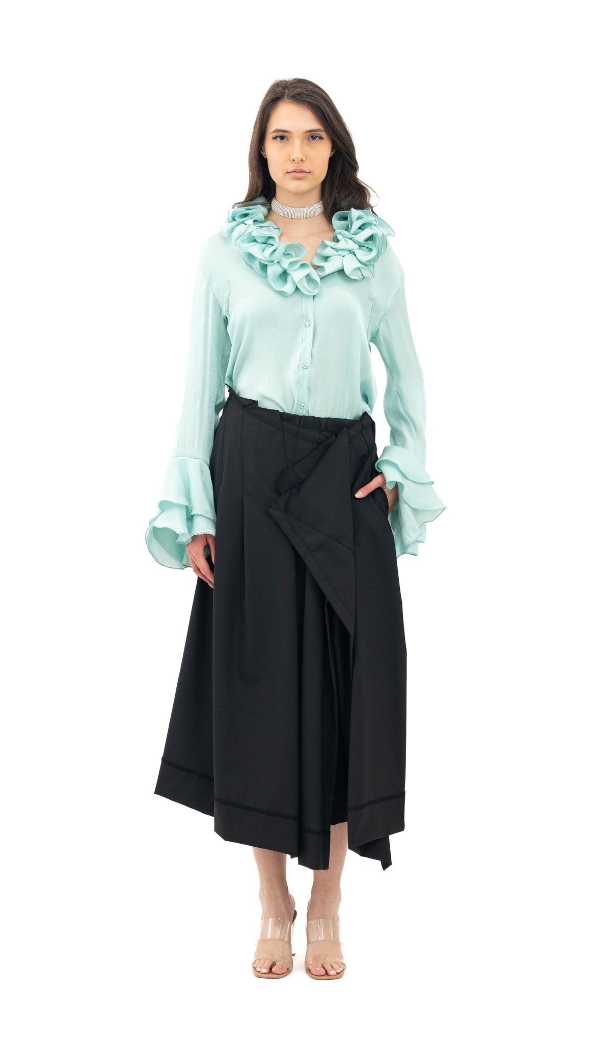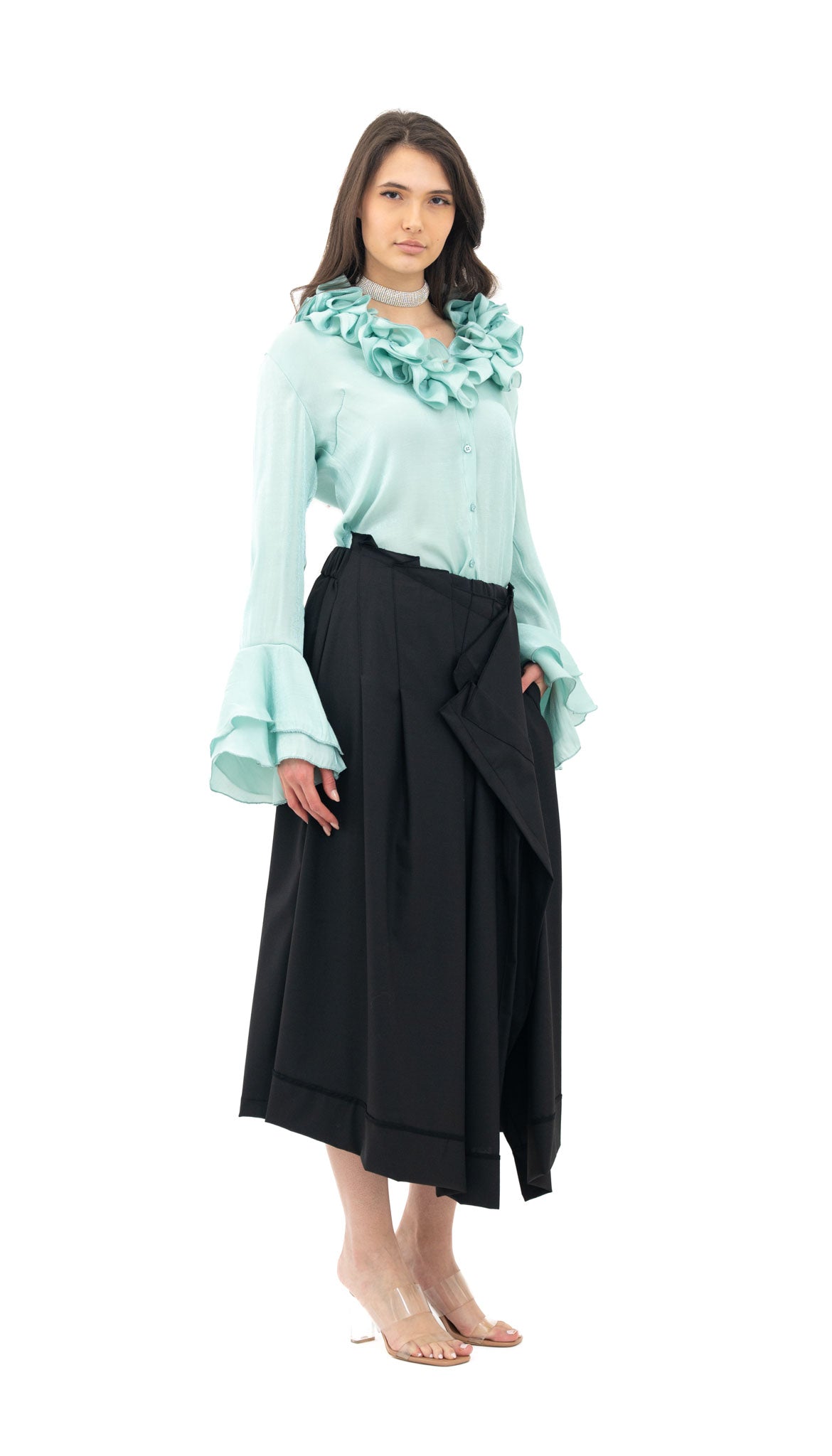Model: Klasičan kroj, ravan model. Dugi zvonoliki rukavi. Izrađena od viskoze.