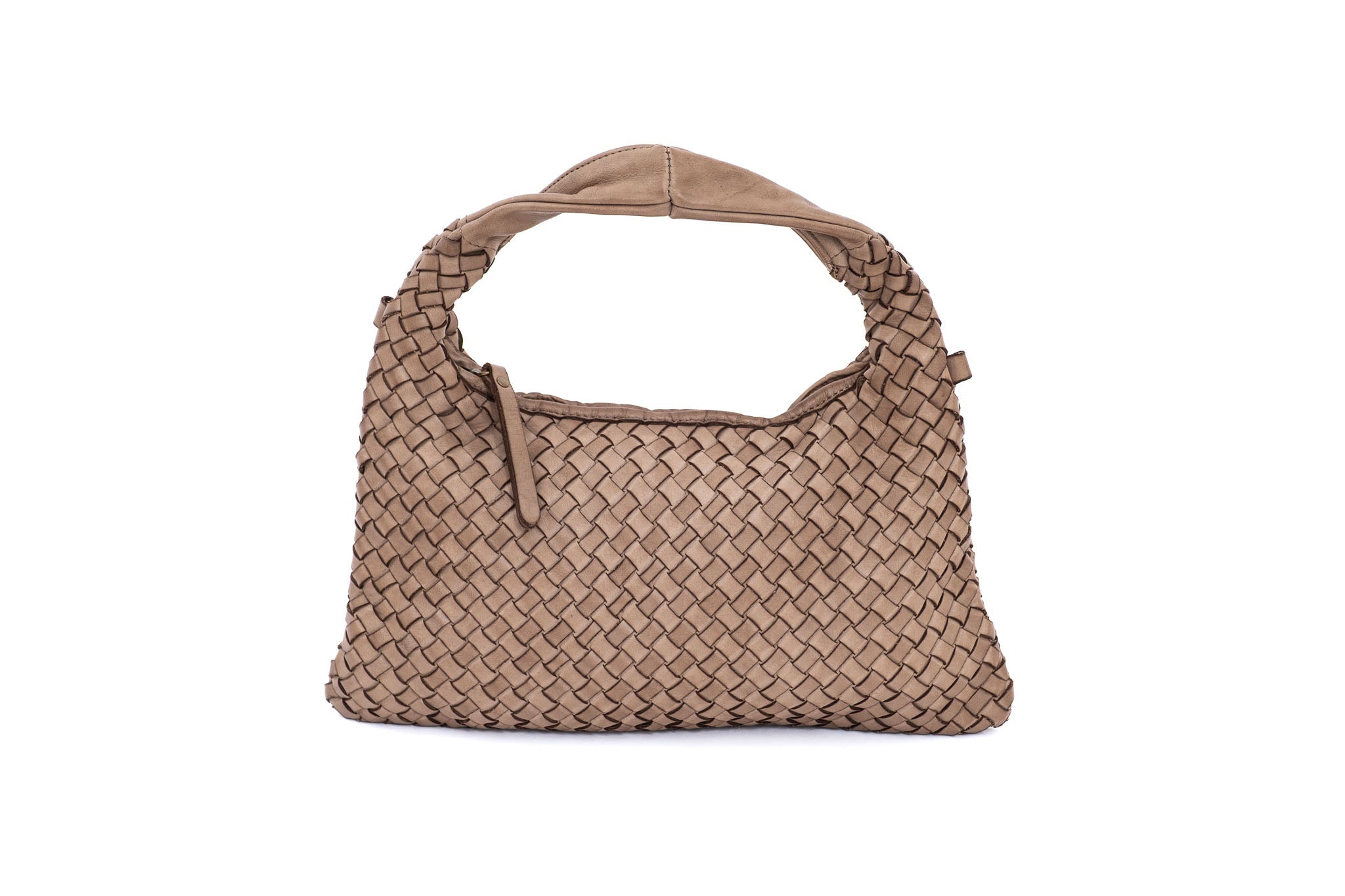 Torba izrađena od meke prirodne kože u prepoznatljivoj toploj smeđoj boji. Ručno pleteni dizajn daje joj jedinstven karakter, dok jednostavan oblik omogućuje lako kombiniranje u različitim prigodama.